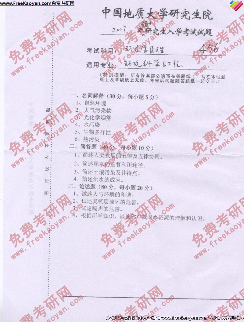 专业课半岛在线注册经验 本站小编 FreeKaoyan 2018-01-23中国地质大学(武汉)2007年半岛在线注册真题-环境学基础