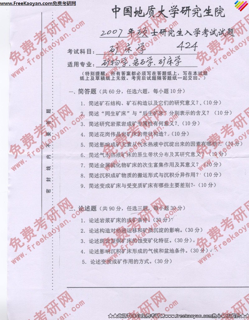 专业课半岛在线注册经验 本站小编 FreeKaoyan 2018-01-23中国地质大学(武汉)2007年半岛在线注册真题-矿产普查与勘探