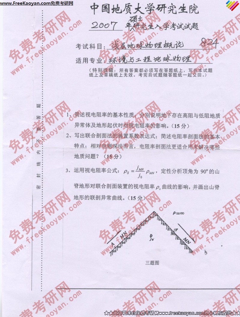 专业课半岛在线注册经验 本站小编 FreeKaoyan 2018-01-23中国地质大学(武汉)2007年半岛在线注册真题-勘查地球物理概论