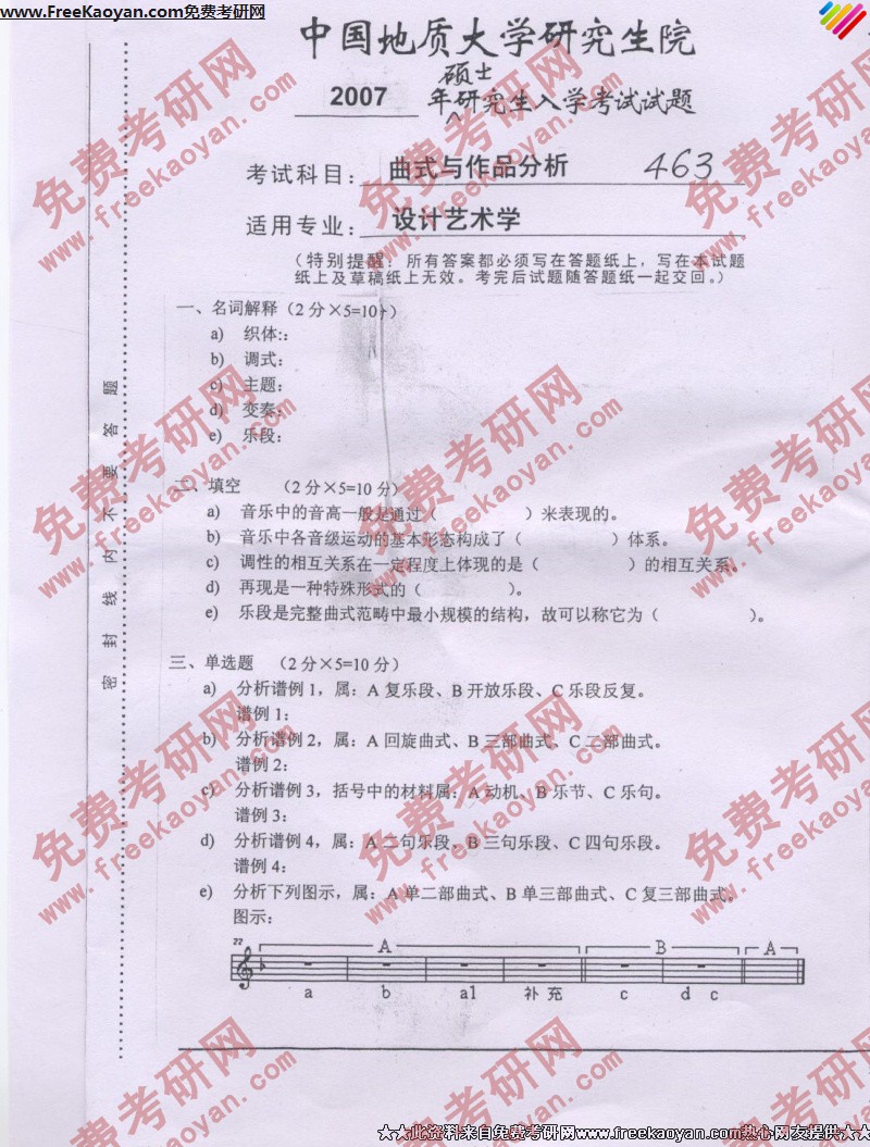 中国地质大学(武汉)2007年半岛在线注册真题-曲式与作品分析