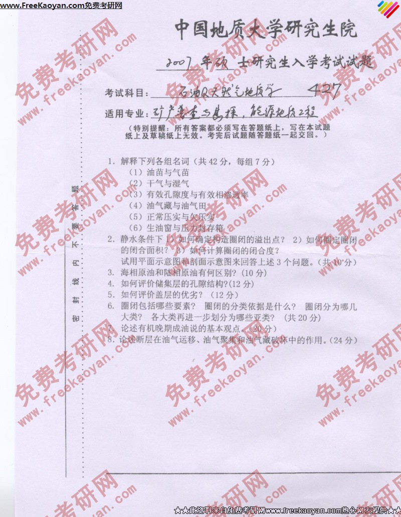 中国地质大学(武汉)2007年半岛在线注册真题-石油及天然气地质学