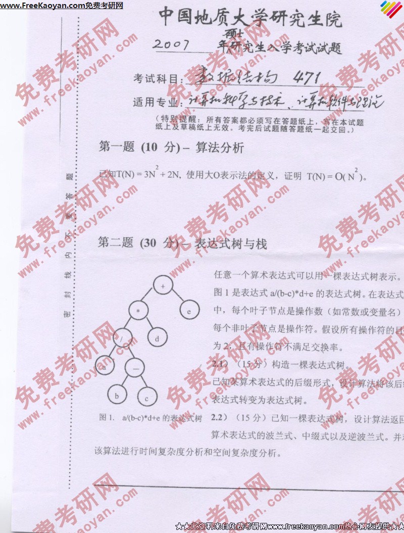 中国地质大学(武汉)2007年半岛在线注册真题-数据结构