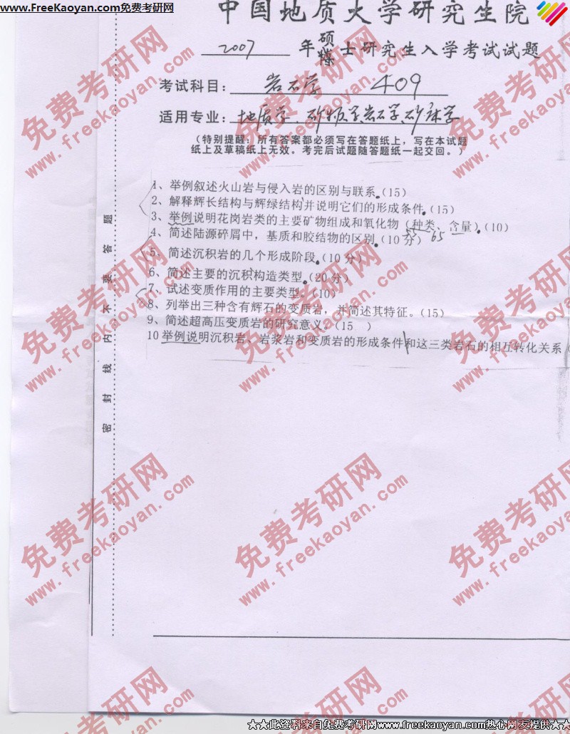 中国地质大学(武汉)2007年半岛在线注册真题-岩石学