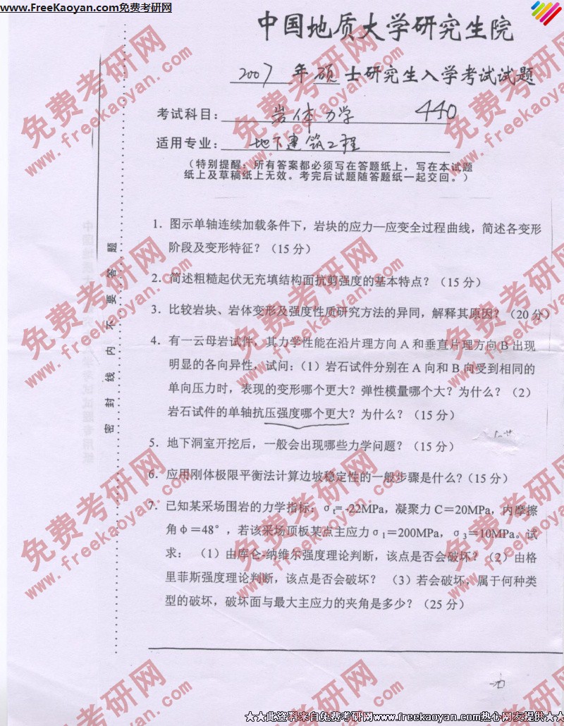 中国地质大学(武汉)2007年半岛在线注册真题-岩体力学