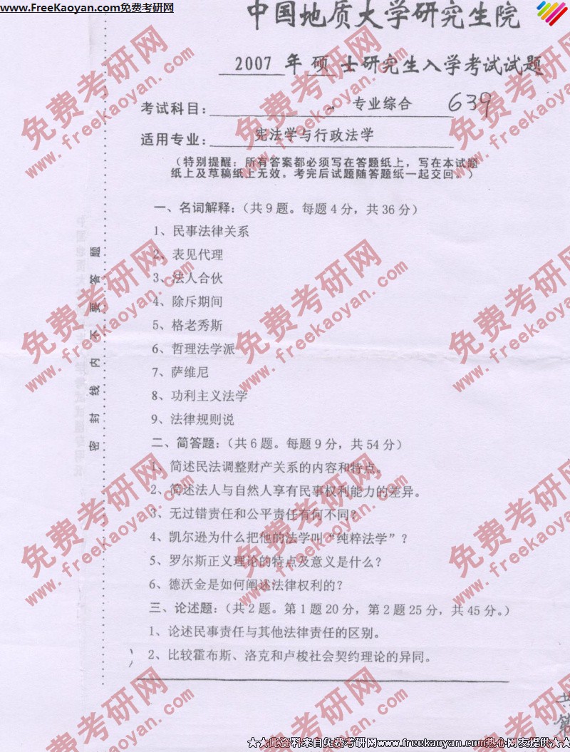 专业课半岛在线注册经验 本站小编 FreeKaoyan 2018-01-23中国地质大学(武汉)2007年半岛在线注册真题-宪法学与行政法学