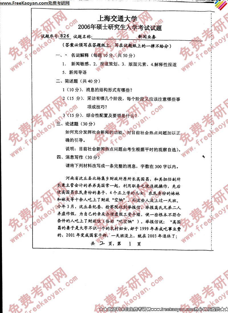 上海交通大学2006年半岛在线注册真题-新闻业务