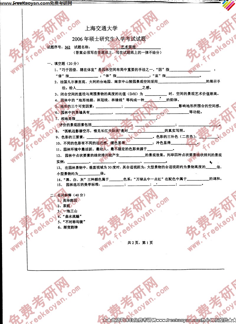 上海交通大学2006年半岛在线注册真题-艺术原理