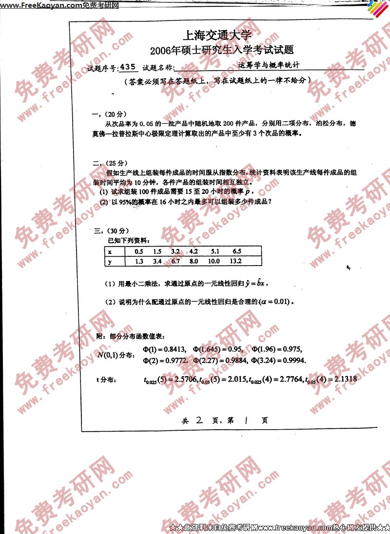 上海交通大学2006年半岛在线注册真题-运筹学与概率统计