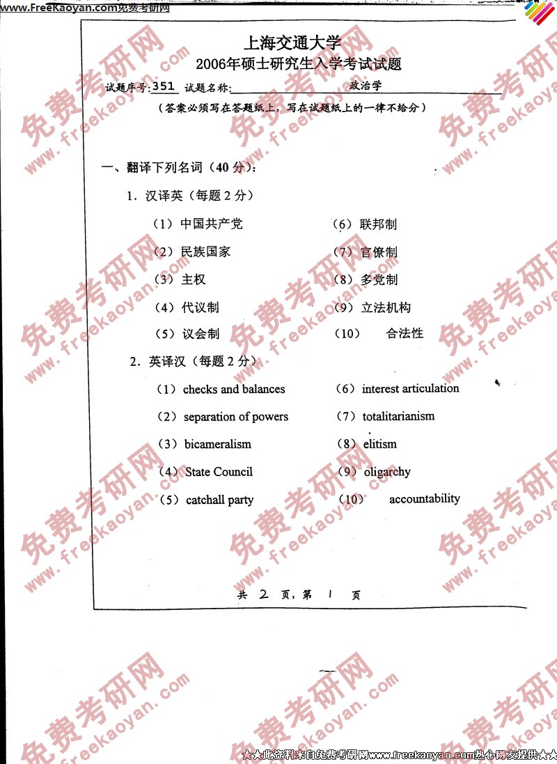 相关话题/上海交通大学 半岛在线注册真题 政治学