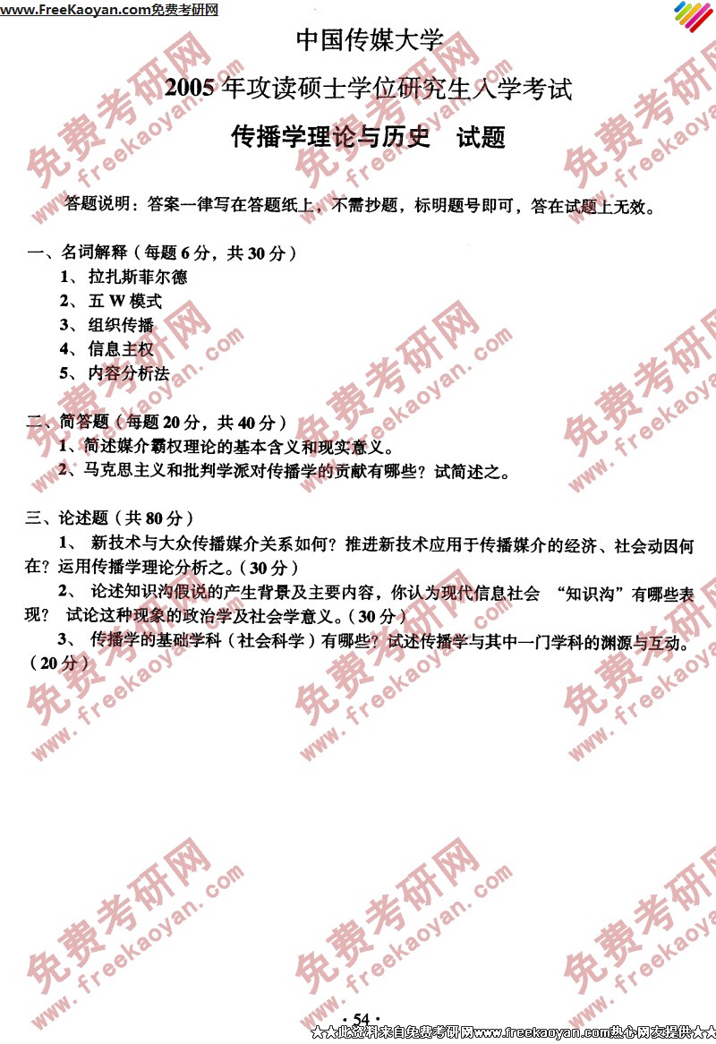 中国传媒大学2005年半岛在线注册真题-传播学理论与历史