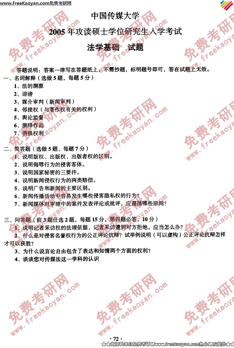 中国传媒大学2005年半岛在线注册真题-法学基础