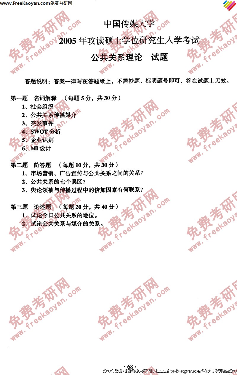 中国传媒大学2005年半岛在线注册真题-公共关系理论