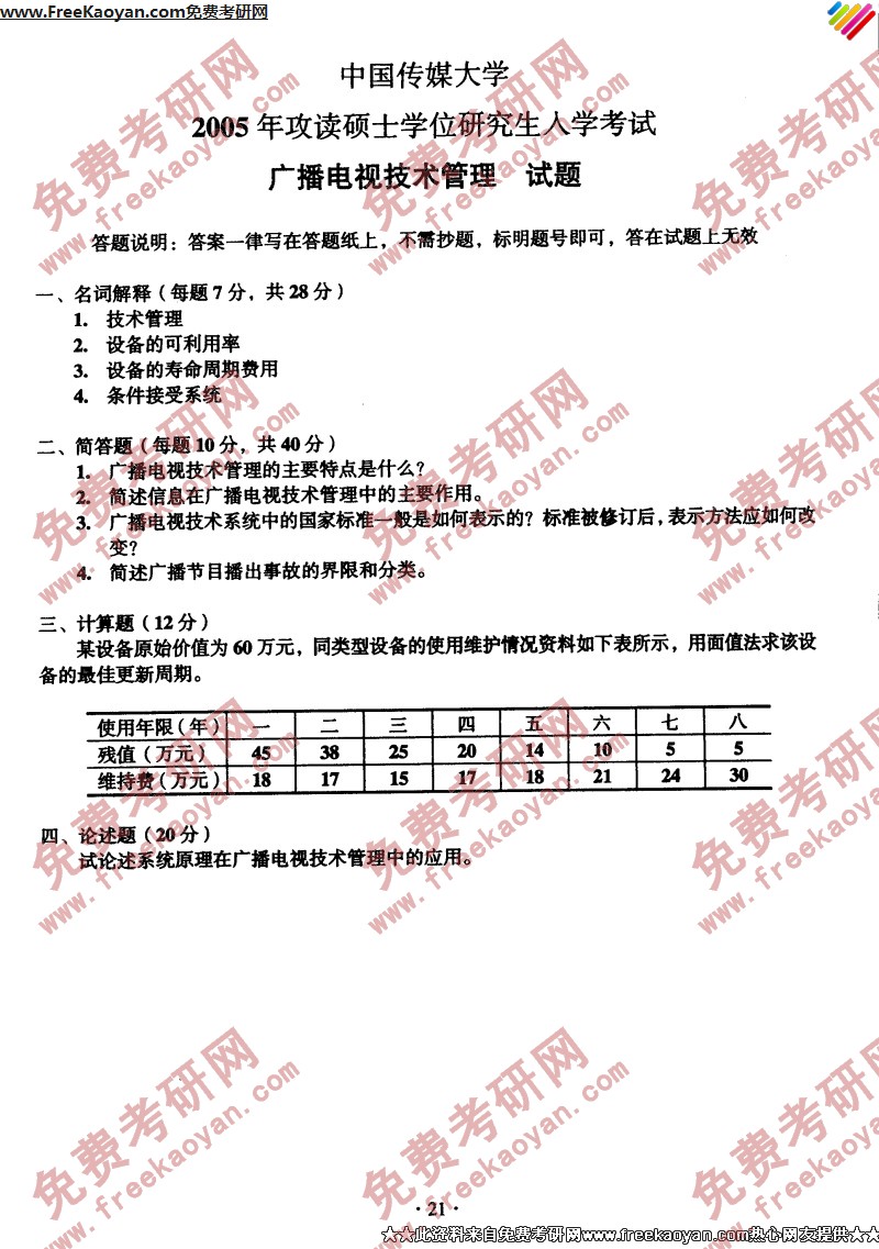 中国传媒大学2005年半岛在线注册真题-广播电视技术管理