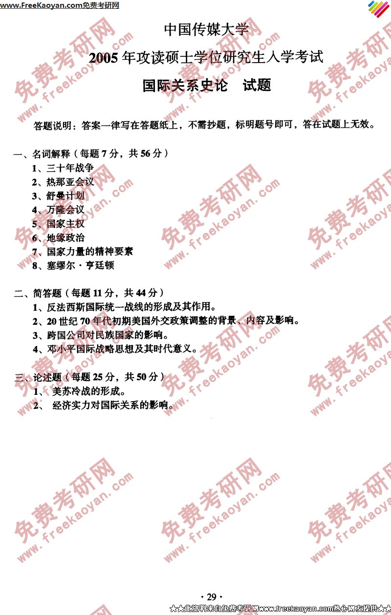 中国传媒大学2005年半岛在线注册真题-国际关系史论