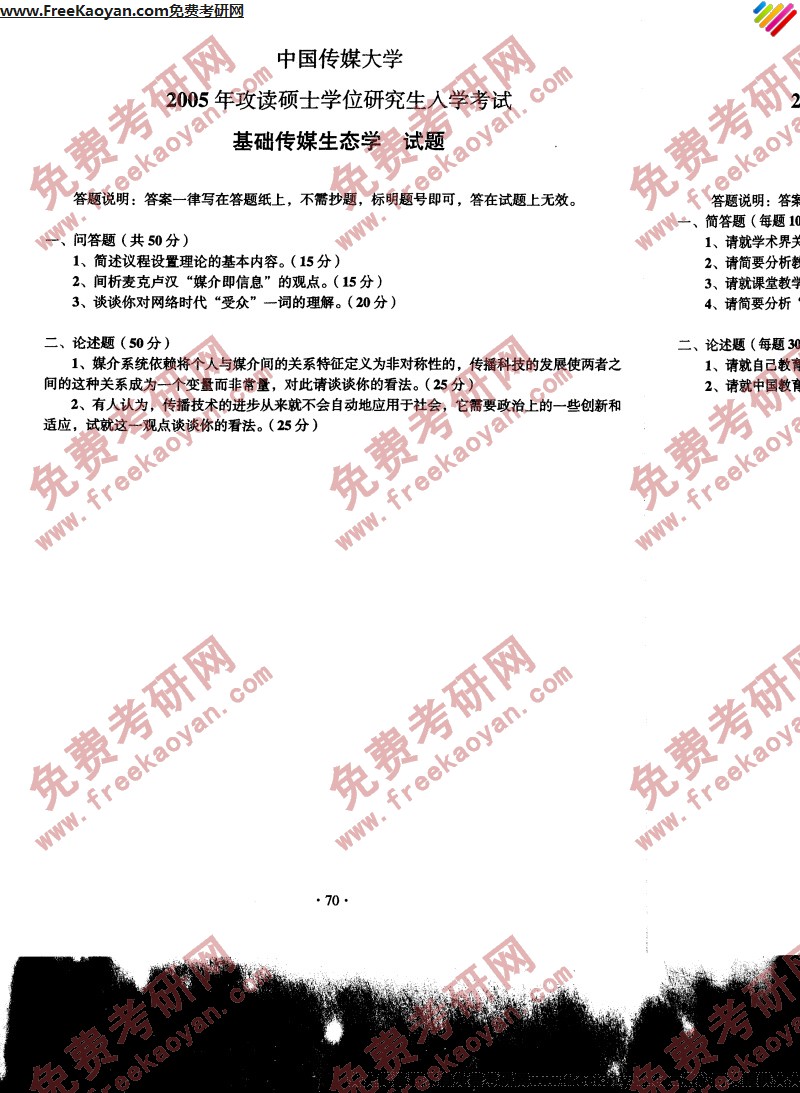 中国传媒大学2005年半岛在线注册真题-基础传播生态学