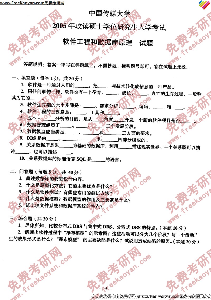 专业课半岛在线注册经验 本站小编 FreeKaoyan 2018-01-23中国传媒大学2005年半岛在线注册真题-软件工程