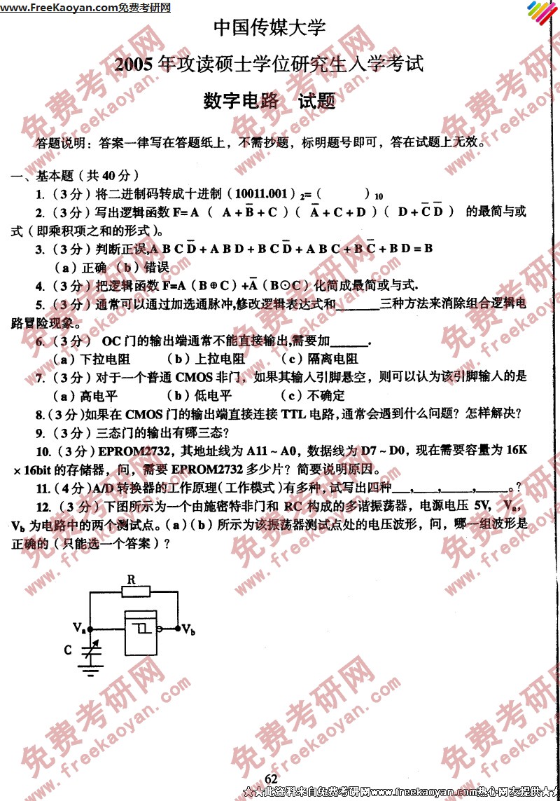 中国传媒大学2005年半岛在线注册真题-数字电路
