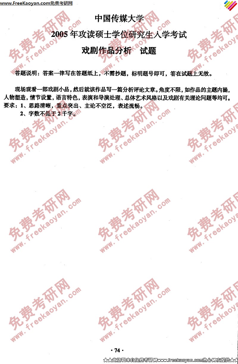 专业课半岛在线注册经验 本站小编 FreeKaoyan 2018-01-23中国传媒大学2005年半岛在线注册真题-戏剧戏曲基础