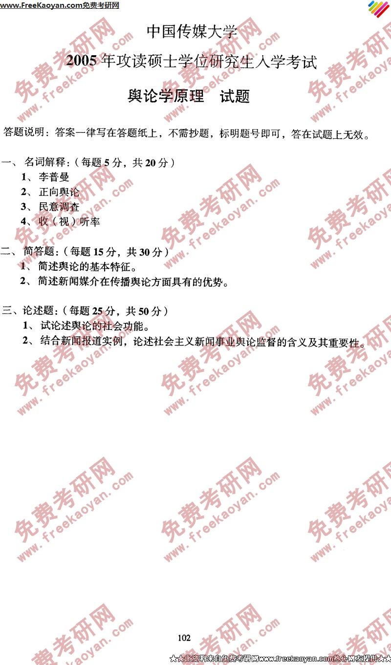 专业课半岛在线注册经验 本站小编 FreeKaoyan 2018-01-23中国传媒大学2005年半岛在线注册真题-应用传播
