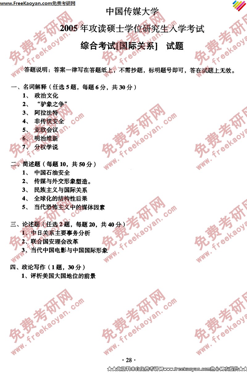 相关话题/半岛在线注册真题 中国传媒大学 国际关系 综合考试