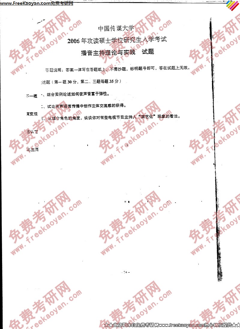 中国传媒大学2006年半岛在线注册真题-播音主持理论与实践