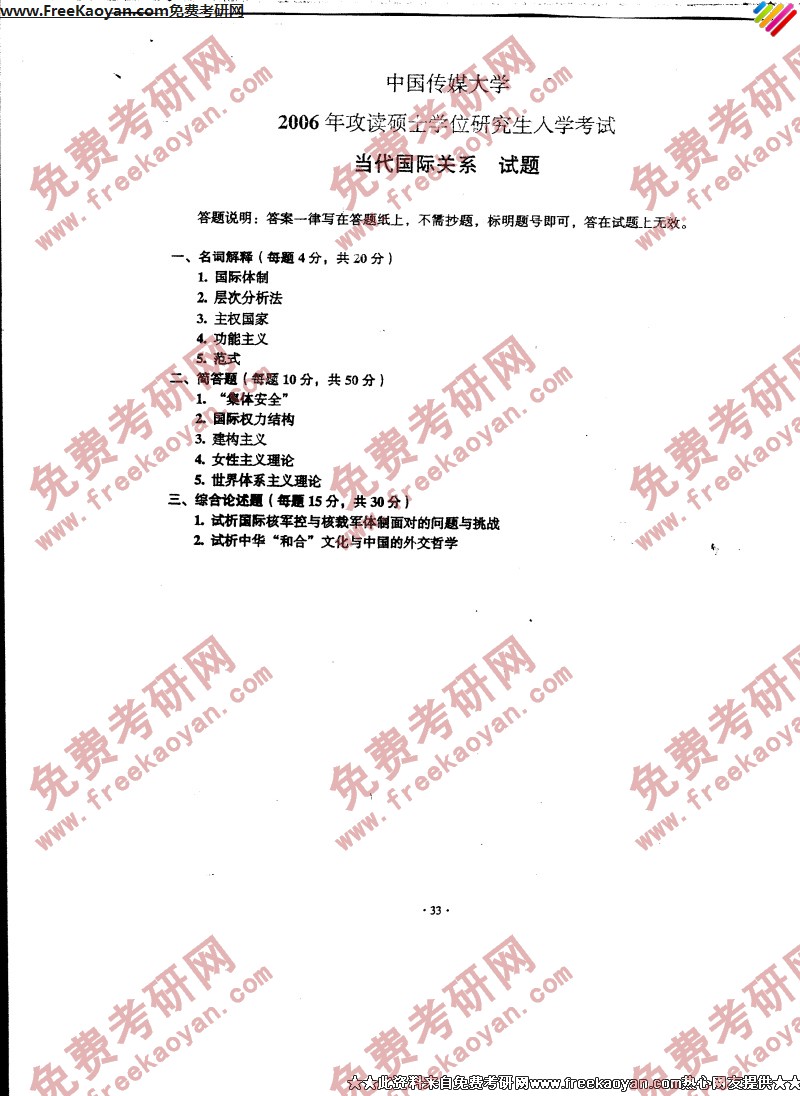 中国传媒大学2006年半岛在线注册真题-当代国际关系