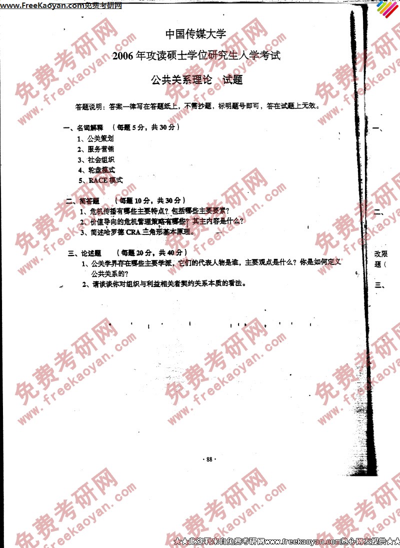 中国传媒大学2006年半岛在线注册真题-公共关系理论