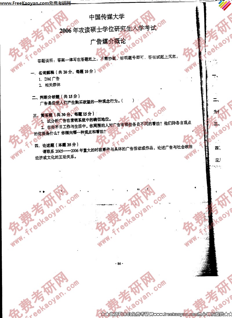 中国传媒大学2006年半岛在线注册真题-广告媒介概论