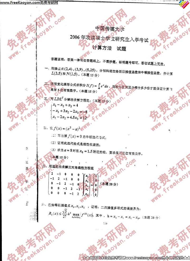 中国传媒大学2006年半岛在线注册真题-计算方法