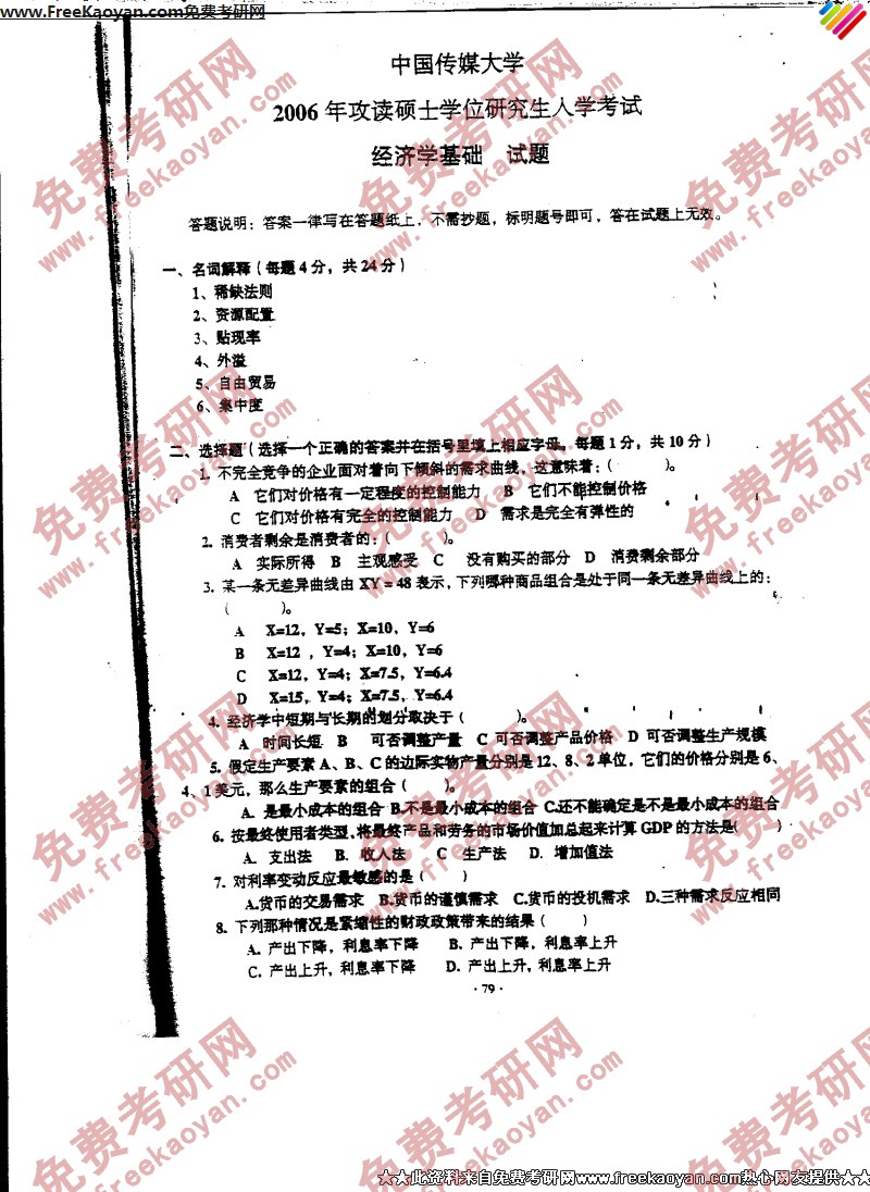 中国传媒大学2006年半岛在线注册真题-经济学基础