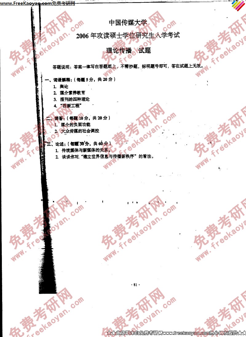 中国传媒大学2006年半岛在线注册真题-理论传播