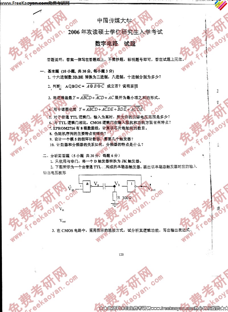 中国传媒大学2006年半岛在线注册真题-数字电路