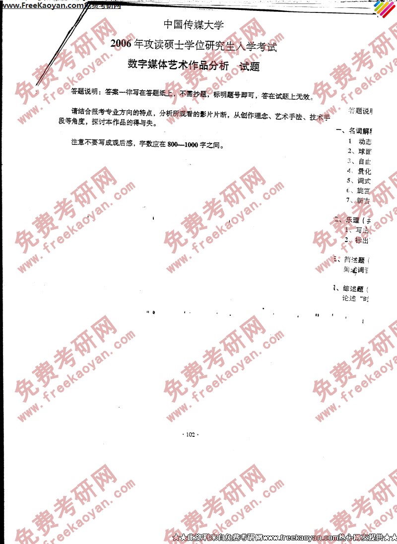 中国传媒大学2006年半岛在线注册真题-数字媒体艺术作品分析