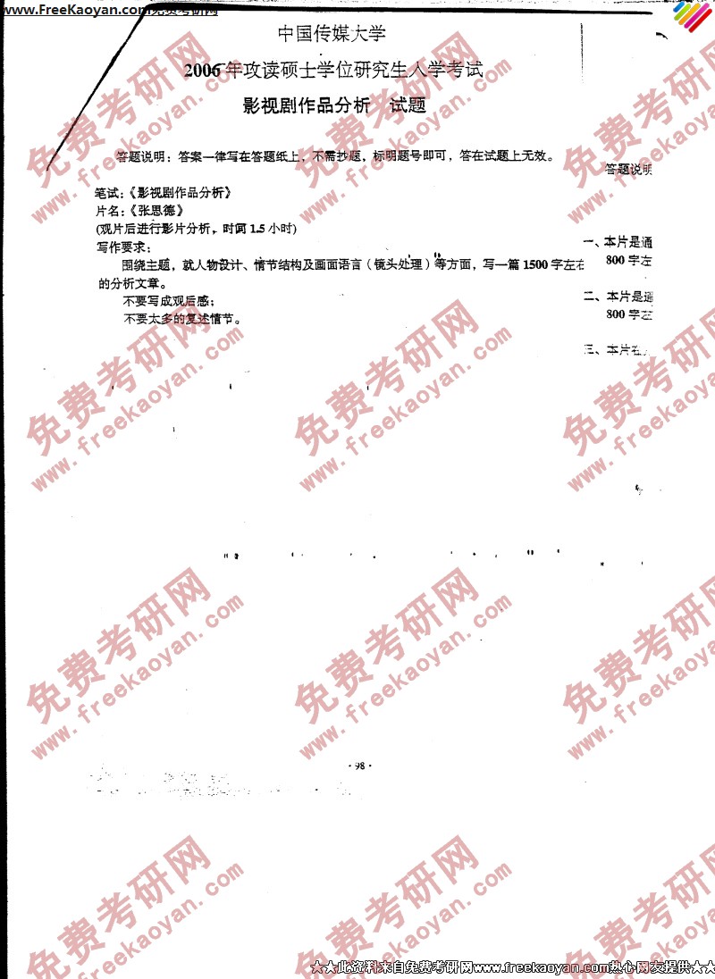 专业课半岛在线注册经验 本站小编 FreeKaoyan 2018-01-23中国传媒大学2006年半岛在线注册真题-外国广播电视