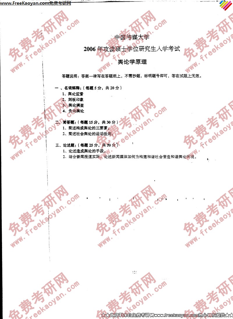 专业课半岛在线注册经验 本站小编 FreeKaoyan 2018-01-23中国传媒大学2006年半岛在线注册真题-应用传播