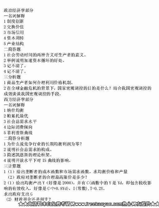 专业课半岛在线注册经验 本站小编 FreeKaoyan 2018-01-23河北大学2007年半岛在线注册真题-政治经济学与西方经济学