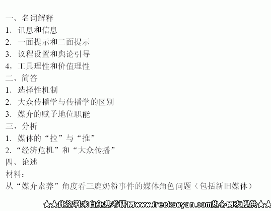 专业课半岛在线注册经验 本站小编 FreeKaoyan 2018-01-23新闻传播综合一 名词解释 50分 1沃尔特2 北大新闻学研究会 3 时务文体 4 镜中人 5 虚拟社区 6 采访权 7 全媒体 8 9 公共广播系统10BBC材料分析 4个 40分1 政府和新闻界之间存在冲突的平衡制约机制2 公民新闻 3 作者传递的是文字 读者反映的是意义 4 某地政府聘请媒体基 ...