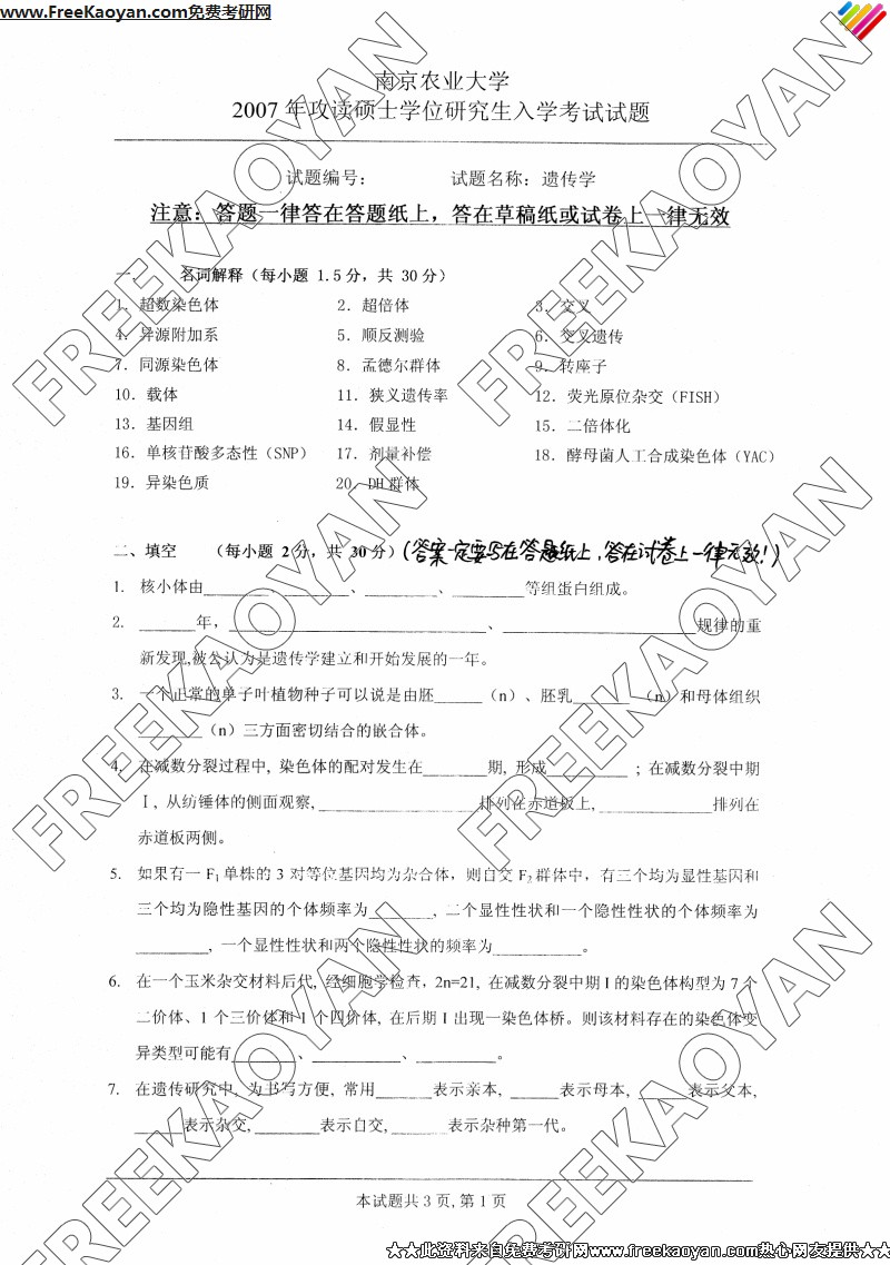 相关话题/南京农业大学 半岛在线注册真题 遗传学