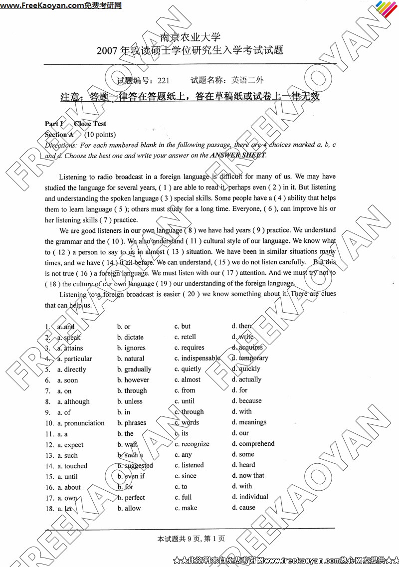 相关话题/南京农业大学 半岛在线注册真题 英语