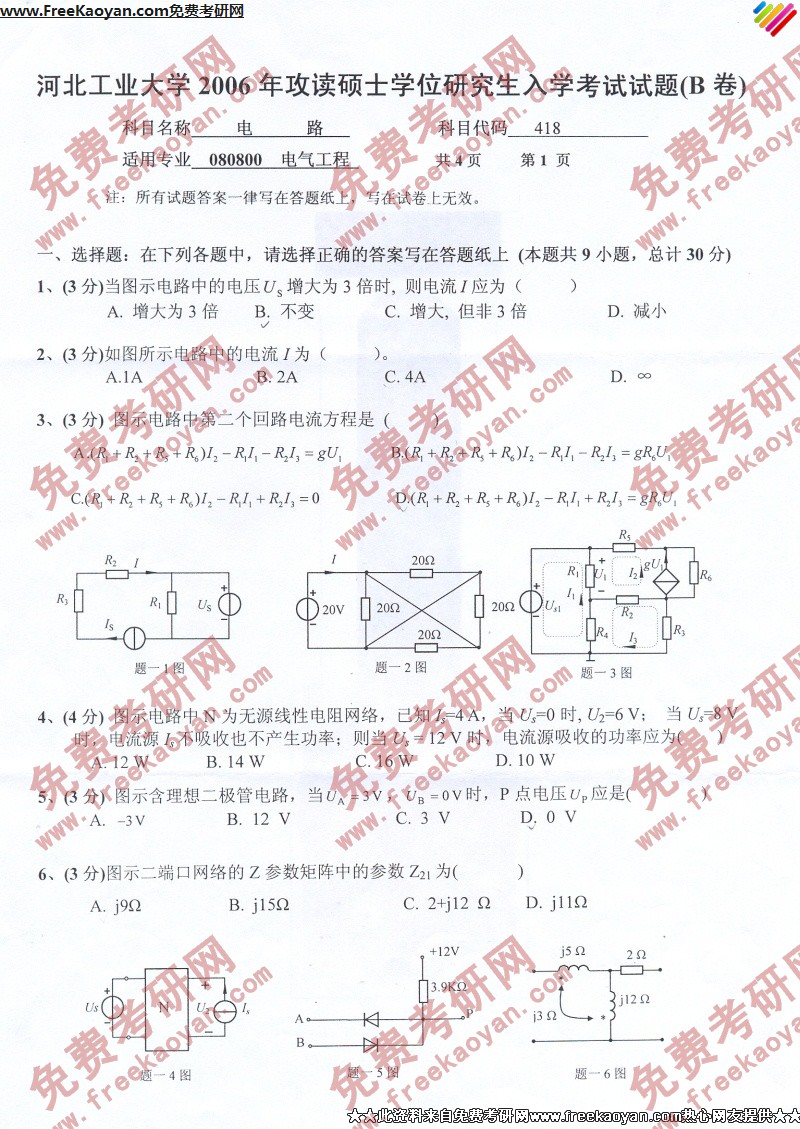 专业课半岛在线注册经验 本站小编 FreeKaoyan 2018-01-23河北工业大学2006年半岛在线注册真题-测控电路B