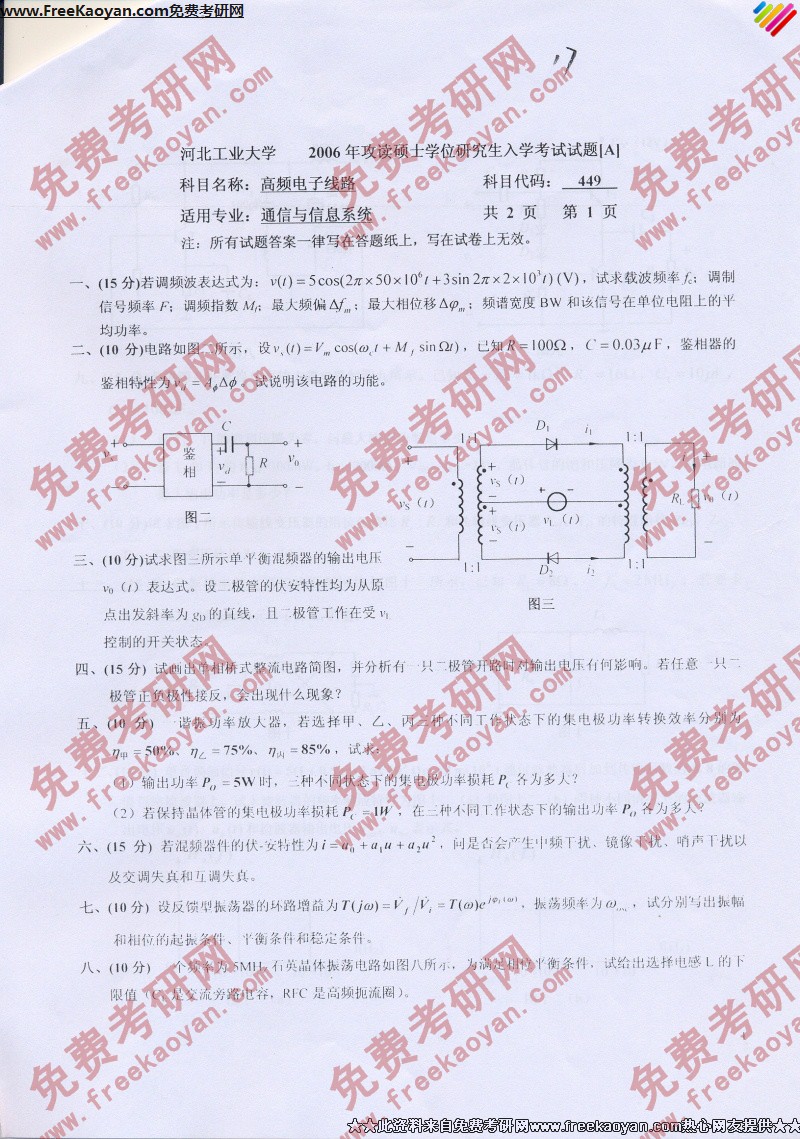 河北工业大学2006年半岛在线注册真题-高频电子线路
