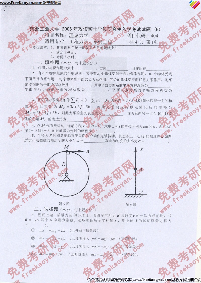 河北工业大学2006年半岛在线注册真题-理论力学B