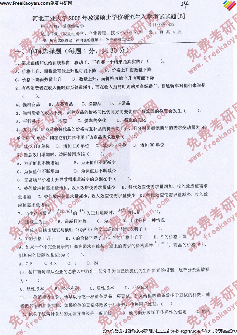 河北工业大学2006年半岛在线注册真题-微观经济学