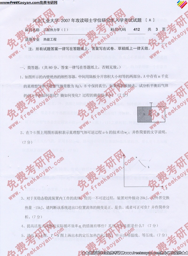 河北工业大学2007年半岛在线注册真题-工程热力学1