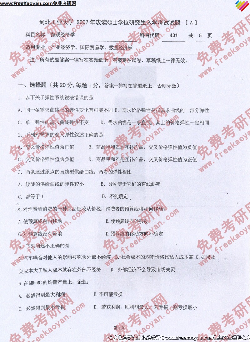 河北工业大学2007年半岛在线注册真题-微观经济学