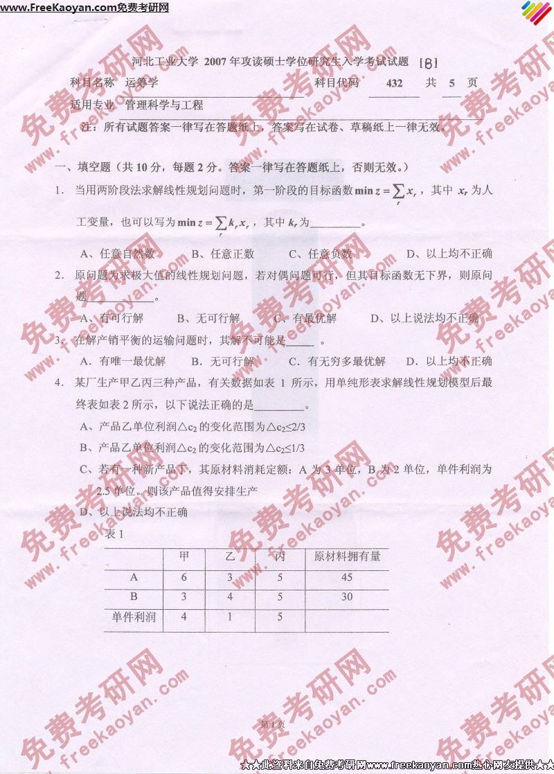 相关话题/河北工业大学 半岛在线注册真题 运筹学