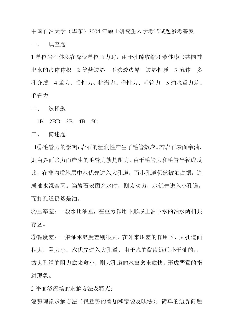 中国石油大学(华东)2004年半岛在线注册真题-渗流力学参考答案