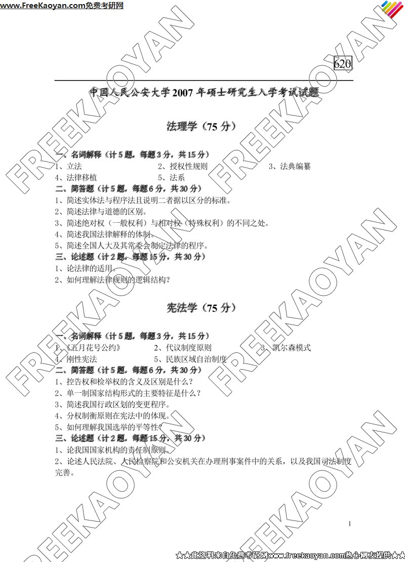 中国人民公安大学2007年半岛在线注册真题-法理学,宪法学
