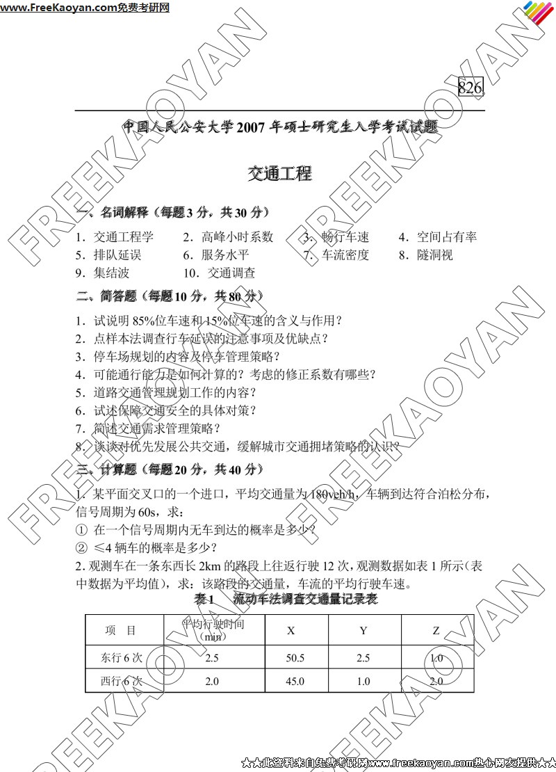 中国人民公安大学2007年半岛在线注册真题-交通工程