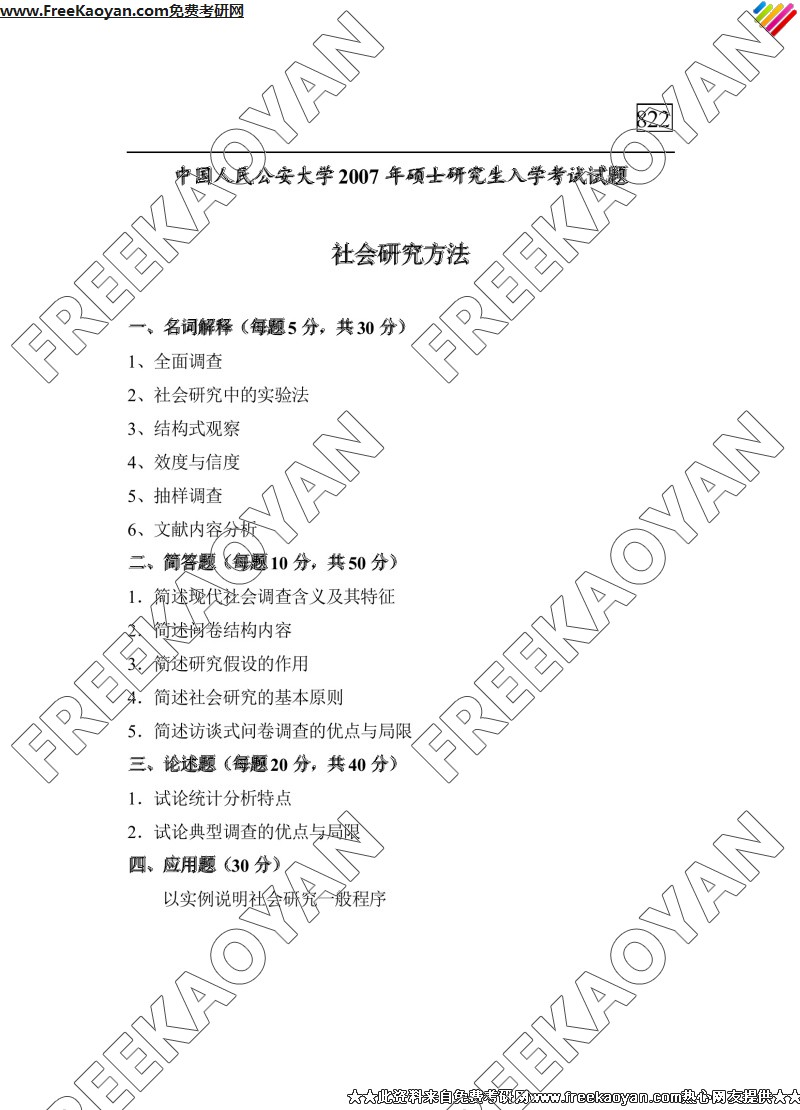 中国人民公安大学2007年半岛在线注册真题-社会研究方法